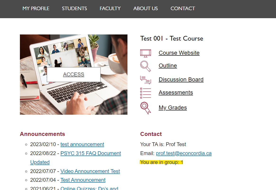 Your group number can be found on the main page of your course portal in the bottom right-hand corner. See the attached example below: